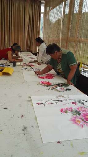 韓家村村民現(xiàn)場學畫牡丹