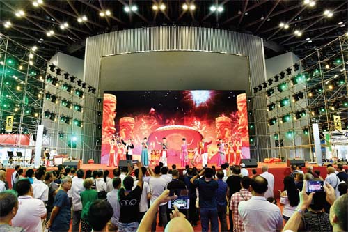 8月25日,第三屆文博會(huì)中心舞臺(tái)河曲二人臺(tái)表演吸引觀眾駐足觀看