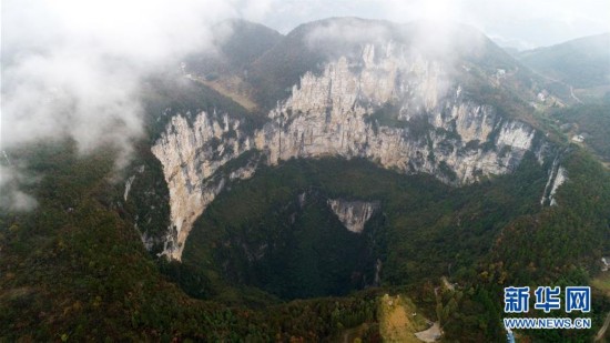 這是11月28日航拍的重慶奉節(jié)小寨天坑。小寨天坑位于重慶市奉節(jié)縣興隆鎮(zhèn)小寨村,坑深666米,是聞名中外的世界地質(zhì)奇觀。 新華社發(fā)