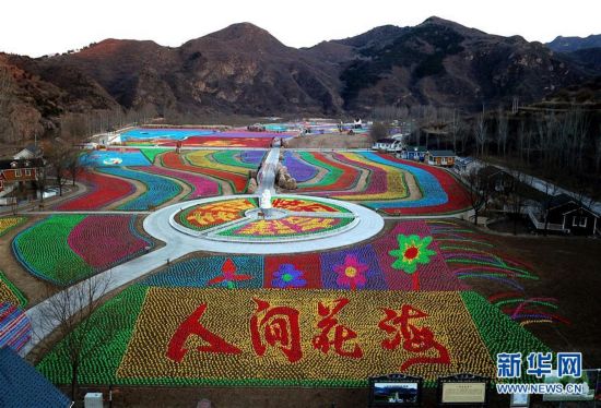 從空中俯瞰北京市密云區(qū)車道峪村用風車打造的“人間花?!敝黝}景觀(12月5日攝)。近日,北京市密云區(qū)車道峪村村民用約120萬只風車,打造出一片占地500畝的“風車?!保鄠€主題。該景觀于12月8日正式亮相。新華社記者 羅曉光 攝