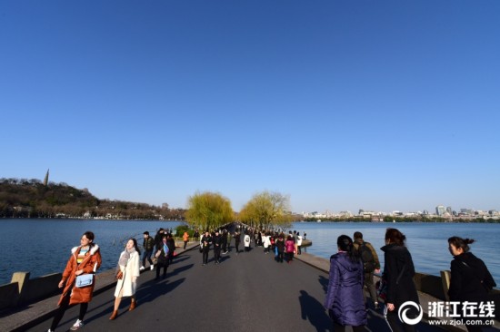 1月9日,寒潮伴隨著“三九”抵杭。西湖邊,雖冷,但久違的“西湖藍”,卻足以刷爆“朋友圈”。(浙江在線 拍友 里爾 攝)