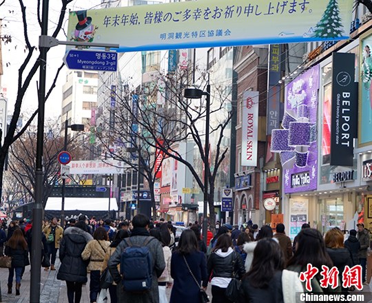資料圖為游客集中的韓國(guó)首爾明洞地區(qū)。中新社記者 吳旭 攝