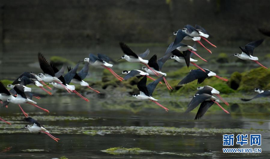這是4月18日在湖北省宣恩縣貢水河國家濕地公園拍攝的“紅腿娘子”黑翅長腳鷸。 近日,近百只黑翅長腳鷸現(xiàn)身湖北省恩施土家族苗族自治州宣恩縣貢水河國家濕地公園。別稱“紅腿娘子”的黑翅長腳鷸在這里飛翔、覓食、嬉戲。 新華社發(fā)(宋文 攝)