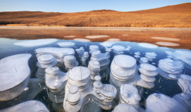 人民網(wǎng)訊 當(dāng)?shù)貢r間2020年11月25日,攝影師兼向?qū)tanislav Tolstnev拍攝到俄羅斯貝加爾湖“氣泡冰”奇景,夢幻般的氣泡,呈現(xiàn)了一種奇異的美麗,讓人感嘆大自然的神奇。這些“冰泡”是由湖底植物釋放出的沼氣(甲烷)在上升過程中因極寒氣溫導(dǎo)致冰封速度過快,被“鎖”在冰層之中而形成的。