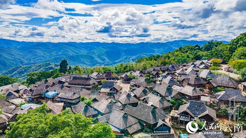 航拍云南景邁山“千年布朗古寨”。人民網(wǎng) 虎遵會(huì)攝