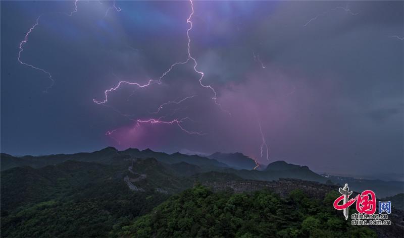 壯美的金山嶺長(zhǎng)城,閃電和雷是大自然舞臺(tái)上最奇特的燈光和音響,令人震撼和驚奇!