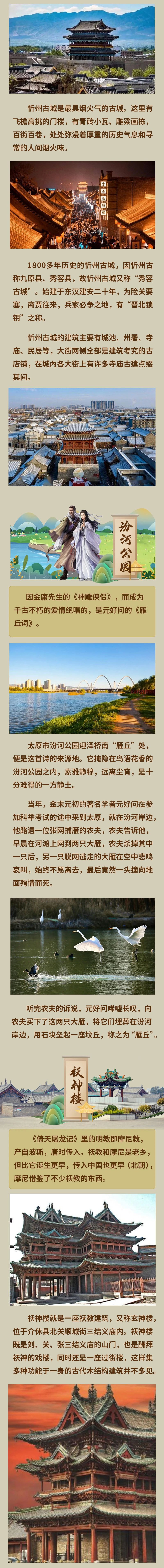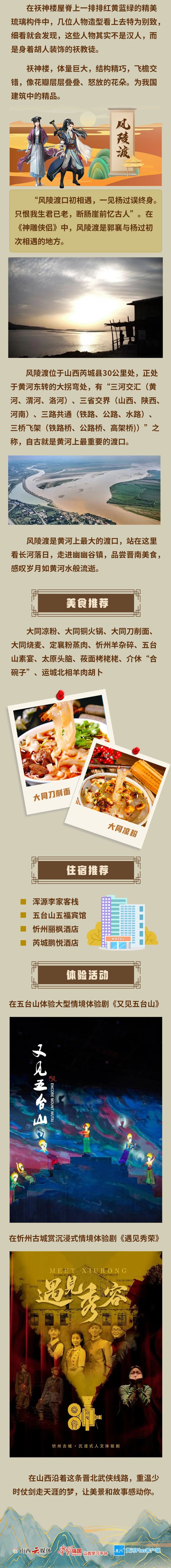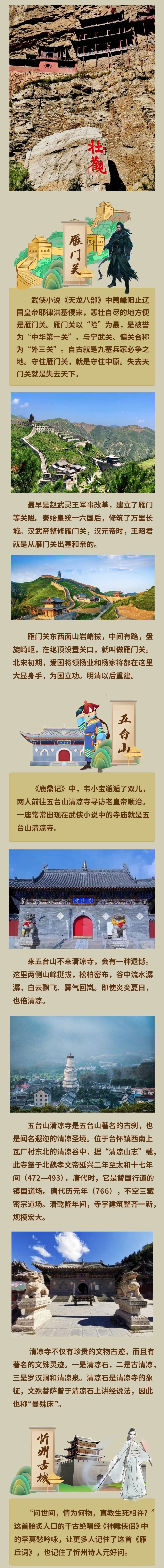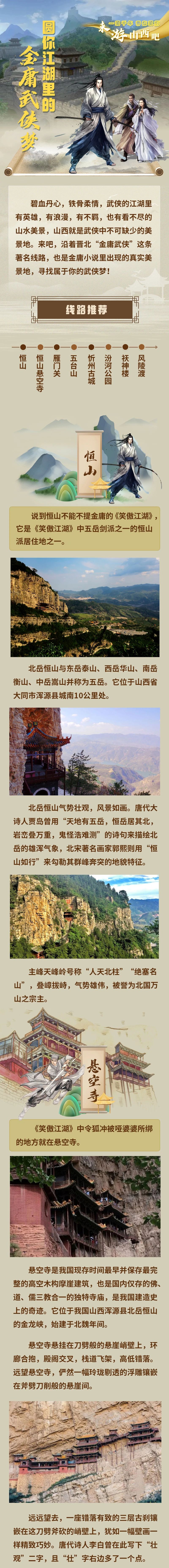 2023山西國風(fēng)文化月已經(jīng)啟動(dòng),啟動(dòng)儀式上發(fā)布的“金庸武俠線路”“詩詞名篇線路”“國家寶藏線路”三條國風(fēng)文化線路備受關(guān)注??次鋫b、讀詩詞、賞國寶,國風(fēng)山西到底怎么玩兒?三張長圖帶你走一遍!