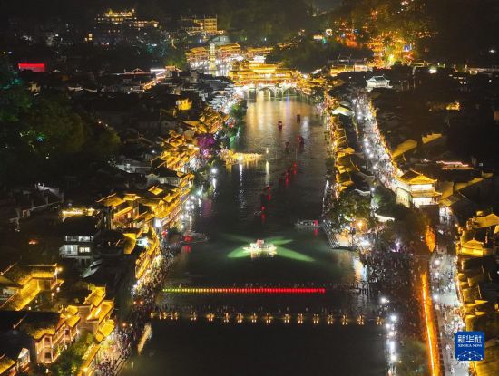 湖南省湘西土家族苗族自治州鳳凰古城持續(xù)推進(jìn)旅游環(huán)境提質(zhì)升級(jí),規(guī)范旅游市場(chǎng),完善旅游服務(wù)設(shè)施。每到夜晚,鳳凰古城沱江兩岸燈光璀璨,美景如畫,吸引眾多游客前來感受“夜鳳凰”的獨(dú)特魅力。