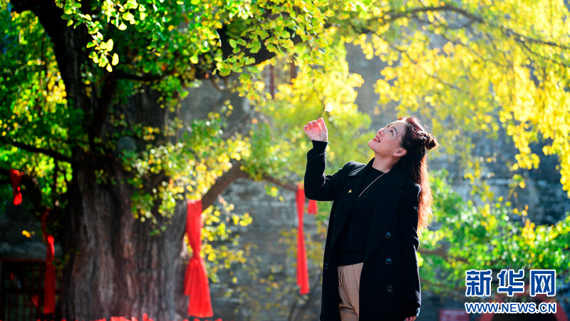 近日,佇立在湖北襄陽廣德寺內(nèi)的銀杏古樹迎來最佳觀賞期,吸引了眾多游客前來拍照打卡。 楊瀟攝 新華網(wǎng)發(fā)?