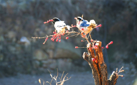 陽泉市開展的水系改善、濕地開發(fā)保護等工程,為各類鳥兒提供了良好的生存環(huán)境,現(xiàn)有各種鳥類130余種。圖為憩于枝頭的紅嘴藍鵲。