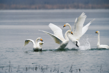 數(shù)千只白天鵝從西伯利亞陸續(xù)飛臨芮城縣境內(nèi)的圣天湖景區(qū),圣天湖已成為美麗的“天鵝湖”。