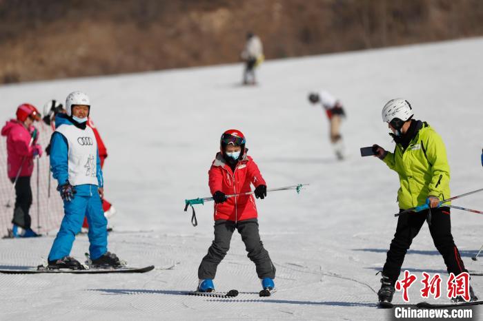 2022年1月4日,北京萬科石京龍滑雪場,市民在雪場練習(xí)滑雪技巧。 中新社記者 盛佳鵬 攝