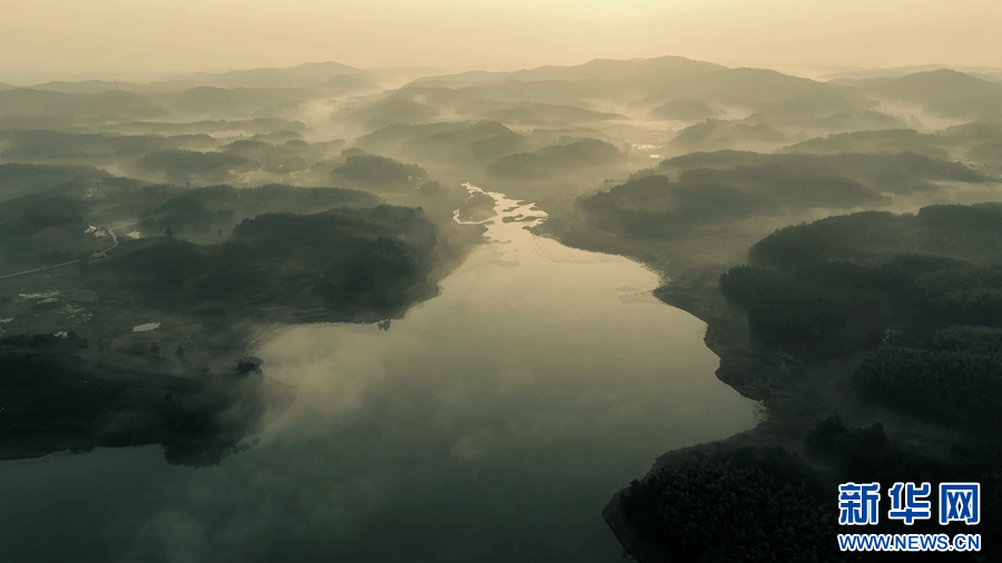 日前,安徽省郎溪縣天子湖景區(qū)出現(xiàn)云霧日出美景,一輪紅日從湖面升起,霞光將樹(shù)葉、怪石、湖水渲染……宛如一幅充滿(mǎn)詩(shī)意的山水畫(huà)。