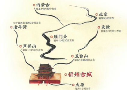 來(lái)到這里,你可以站在溝壑縱橫、梁峁起伏的黃土高原,欣賞懸崖峭立、水石相激的晉陜峽谷,也可以在古木參天、濃蔭蔽日的森林公園里散步,在百草茂盛、一望無(wú)垠的高山草甸上仰望星空。你可以游覽世界文化景觀遺產(chǎn)、佛教名山的五臺(tái)山,也可以領(lǐng)略秀容、岢嵐、寧化、代州4座悠遠(yuǎn)古城的各有千秋,登攀三關(guān)營(yíng)堡、歷朝歷代的邊塞長(zhǎng)城。你可以在偏關(guān)老牛灣古渡、河曲西口古渡搖櫓渡河,回想晉商的輝煌,也可以身臨夜襲陽(yáng)明堡飛機(jī)場(chǎng)遺址,重溫榮耀,感受歷史的震撼……