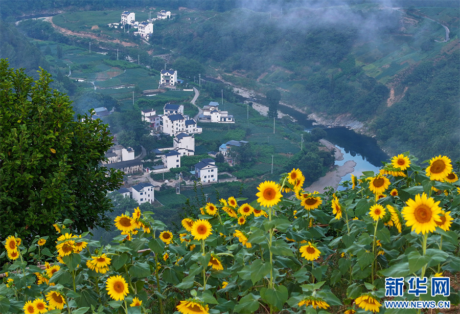 夏日,安徽省黃山市歙縣石潭古村景色迷人,向日葵、格桑花次第綻放。游客們在花海中徜徉,感受著詩意盎然的夏日鄉(xiāng)村美景。