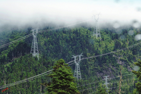 11.為了萬(wàn)家燈火通明,中國(guó)電力工人將一座座電塔架在了海拔5000多米的云端里。