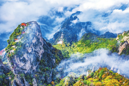 【河東八景 玉柱霞舉】永濟五老峰景區(qū)。