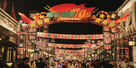 那年昔陽特色民俗街區(qū)昏黃的燈光,如同定格的照片,懷舊又親切。街兩旁的建筑保持著二十世紀六七十年代的模樣,有著濃郁的時代特色。