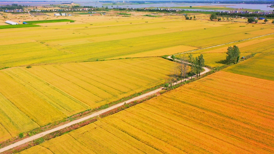 初夏時節(jié),安徽省潁上縣廣袤大地上麥香四溢。麥田在陽光下泛著金黃,麥浪滾滾,收獲在望。麥田、村落、河流、阡陌構(gòu)成一幅美麗的田園風(fēng)光。