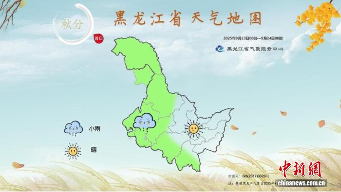 2025年“秋分首日”黑龍江省天氣地圖(2025年9月23日8時(shí)至24日8時(shí))。 黑龍江省氣象局供圖