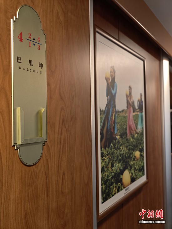 穿行在車(chē)廂中間,處處可見(jiàn)新疆的濃濃風(fēng)情。秉持“一車(chē)一風(fēng)景”的理念,車(chē)廂內(nèi)每個(gè)房間均以新疆知名景區(qū)命名,房間門(mén)口還張貼著對(duì)應(yīng)景點(diǎn)的美食美景海報(bào),讓游客未至景區(qū),先浸風(fēng)情。