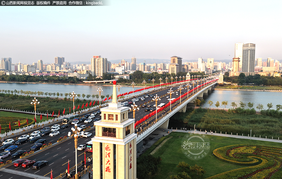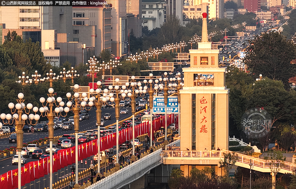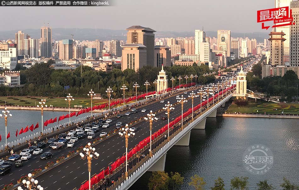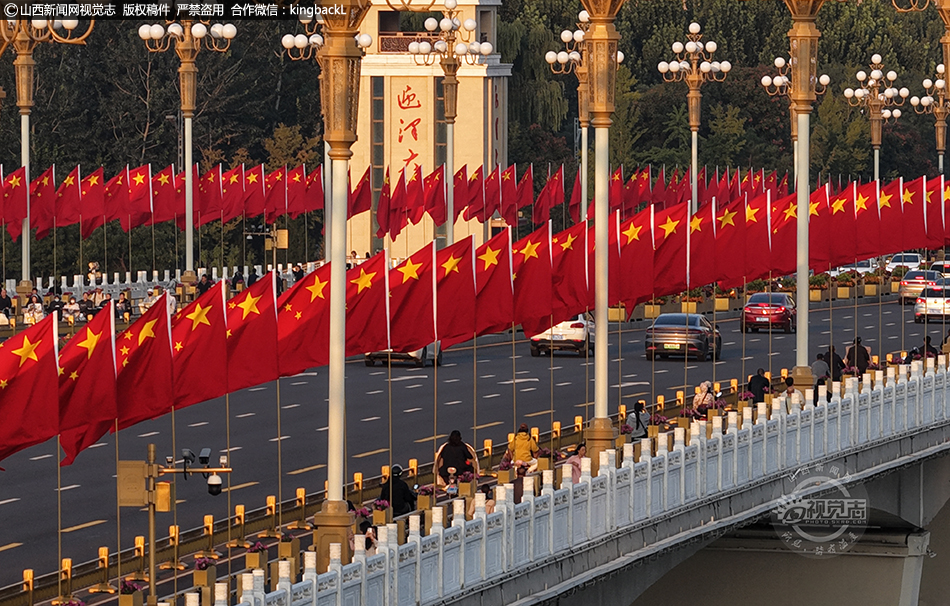 山西太原:迎澤橋 “中國(guó)紅”引打卡 國(guó)慶氛圍拉滿