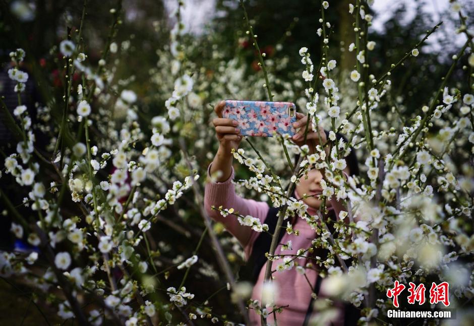 2月20日,三湘大地氣溫逐漸回升,湖南省森林植物園千株梅花競(jìng)相綻放,眾多游客置身于花海中,與這難得的美景合影留念。 楊華峰 攝