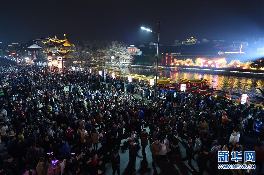 2月22日晚,游人在夫子廟景區(qū)觀燈游玩。當(dāng)晚,在江蘇南京夫子廟秦淮風(fēng)光帶舉辦的秦淮燈會(huì)彩燈齊放,人們前來(lái)觀燈鬧元宵。 新華社記者孫參攝