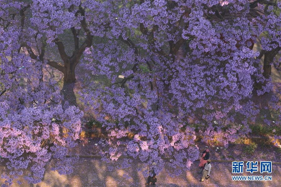 在津巴布韋首都哈拉雷,隨處盛開的藍花楹成為靚麗的風景(10月2日攝)。 近日,位于非洲南部的津巴布韋進入春季,全國各地的藍花楹紛紛盛開。津巴布韋風光秀麗,擁有維多利亞瀑布、大津巴布韋遺址等5處世界自然或文化遺產(chǎn)。首都哈拉雷有多處神奇的平衡石景觀,同時也因出色的園藝被稱為非洲“花城”。新華社發(fā)(陳雅琴攝)