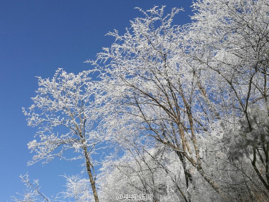 受較強(qiáng)冷空氣影響,秦嶺腹地涼風(fēng)埡山頂,出現(xiàn)大面積霧凇景觀。玉樹(shù)瓊枝,晶瑩剔透,讓涼風(fēng)埡山頂變得像童話世界一般,美不勝收。 央視記者王志杰 圖片來(lái)源:央視新聞微博
