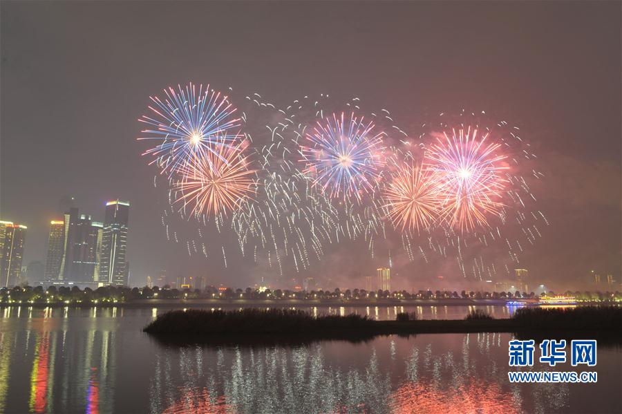 2017年1月1日夜晚,長沙橘子洲附近湘江上空綻放絢麗焰火。當(dāng)晚,湖南長沙橘子洲舉行焰火晚會慶祝新年到來。整場焰火晚會主題為“多彩星城、魅力長沙”,焰火燃放時間約20分鐘。 新華社記者 龍弘濤攝