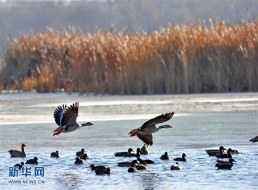 水鳥飛翔在拉魯濕地上空(1月7日攝)。入冬以來,位于拉薩城邊的拉魯濕地國(guó)家級(jí)自然保護(hù)區(qū)候鳥增多,斑頭雁、赤麻鴨、野鴨等數(shù)十種候鳥在這里過冬。拉魯濕地國(guó)家級(jí)自然保護(hù)區(qū)海拔3600多米,總面積12.64平方公里,是中國(guó)海拔最高、面積最大的城市天然濕地,被譽(yù)為“拉薩之肺”。新華社記者 張汝鋒 攝