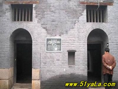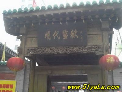 “蘇三監(jiān)獄”在今洪洞縣政府院內(nèi)西南,亦即明洪洞縣衙西南角。一進(jìn)掛有“明代監(jiān)獄”匾額的大門,首先看到的便是蘇三的塑像,外院當(dāng)年監(jiān)獄的辦公場所,右邊的院落是普通監(jiān)牢,中間是過道,兩邊共有監(jiān)牢十余間,過道頂上布有鐵絲網(wǎng),網(wǎng)上掛有銅鈴,一有犯人企圖越墻逃跑,便會觸響銅鈴。過道的盡頭,正對的是獄卒的值班室,右面的墻上有獄神的供位,傳說當(dāng)年囚犯入獄都要參拜獄神,就是獄神下面的墻基處,有一小洞,是當(dāng)年運(yùn)送尸體的出口,犯人在獄中病死或是被打死,是不能從大門抬出去的,只能從這個小洞拉出去。過道盡頭的左邊,便是死囚牢的大門,死囚牢雙門雙墻,門上畫有狴犴,狴犴是龍的兒子,長得卻象老虎,因此人們誤稱為“虎頭牢”,大約是因?yàn)辇埳抛樱幼硬煌?,狴犴專門掌管刑獄,大門只有一米六高,所有進(jìn)入死囚牢的人都要在狴犴像前低頭,顯示對法律的敬畏。進(jìn)了門洞,里面還有一道門,而這兩道門卻是一扇從右開,一扇從左開,不明就里的囚犯如果越獄,往往出了第一道門卻怎么也打不開第二道門,一個小小的改動就能起到拖延犯人越獄時間的作用,不能不佩服古人的智慧。進(jìn)入死牢院,右面是一堵高墻,左面就是當(dāng)年關(guān)押蘇三的牢房,里面有蘇三的塑像。死囚院的中央還有當(dāng)年蘇三坐監(jiān)時洗衣的水井和石槽,井口留有一道道繩索磨下的印記,井口只有半尺多寬,這是為了防止死囚投井自殺。據(jù)說,右面的高墻里灌裝的都是流沙,如果犯人想要挖墻越獄,流沙便會從挖開的小口中源源不斷地流來,使其難以挖通圍墻。1964年我國著名考古學(xué)家王冶秋先生曾在洪洞考察確認(rèn),蘇三監(jiān)獄為我國罕見的明代監(jiān)獄,并題詩曰:“虎頭牢里羈紅妝,一曲攪亂臭水漿。王三公子今何在?此處空留丈八墻?!笔陝觼y期間,蘇三監(jiān)獄被拆毀。為了使“蘇三監(jiān)獄”這一僅存的明代監(jiān)獄得以保留,洪洞縣人民政府后做出了修復(fù)“明代蘇三監(jiān)獄”的決定。修復(fù)事宜于1984年5月開始,同年10月竣工。