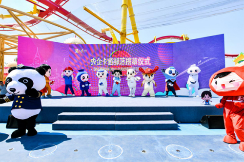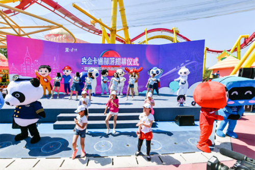 “國資小新”攜手中國華電“華小電”、中國電建“吉娃”、中國電科“小推”、華潤集團“嗨皮潤”、中國建筑“藍寶”、中國石化“小石頭”、南網(wǎng)電網(wǎng)“小赫茲”、中國核電“華龍寶寶”、中國建材“小料”、中遠海運“PANDA”、中化集團“小化”、中國鐵建“福鹿娃”等12家央企卡通形象,打破次元壁,卡通雕塑落地北京歡樂谷,傾力打造與公眾零距離的“央企卡通部落”。它們賣萌有度、服務貼心,接地氣、聚人氣。在來自政、企、媒、學等領域的近300位嘉賓及觀眾的見證下,央企新聞宣傳負責人為各自的卡通雕塑揭幕。從平面化、虛擬化的卡通形象到立體化、實物化的卡通雕塑,“國資小新”與央企卡通以全新的面貌和大家見面,并常駐北京歡樂谷。