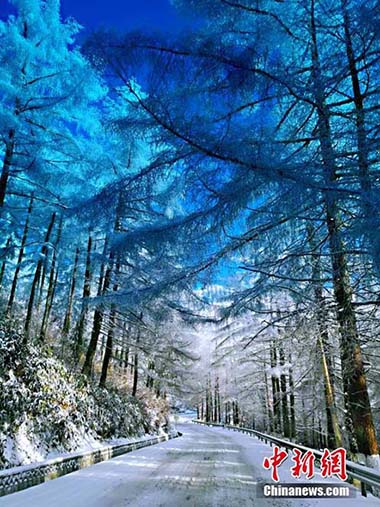 湖北現“林海雪原” 銀裝素裹風景如畫