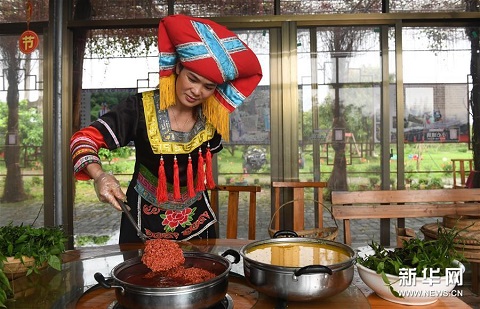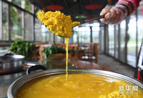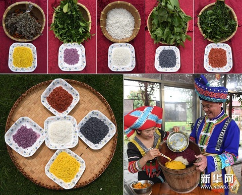 探秘“壯族三月三”五色糯米飯制作
