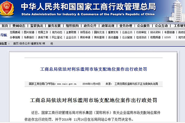 新華網(wǎng)北京11月16日電(記者婁奕娟)11月16日,國(guó)家工商行政管理總局官網(wǎng)發(fā)布處罰決定書稱,2009-2013年期間利樂(lè)集團(tuán)(簡(jiǎn)稱利樂(lè))有關(guān)企業(yè)濫用市場(chǎng)支配地位案件,對(duì)其依法作出行政處罰,其中處罰款近6.68億元人民幣。 調(diào)查認(rèn)定:2009-2013年期間,利樂(lè)憑借其在設(shè)備市場(chǎng)、技術(shù)服務(wù)市場(chǎng)的支配地位,在提供設(shè)備和技術(shù)服務(wù)過(guò)程中搭售包材;憑借其在包材市場(chǎng)的支配地位,通過(guò)限制原料紙供應(yīng)商與其競(jìng)爭(zhēng)對(duì)手合作、限制原料紙供應(yīng)商使用有關(guān)技術(shù)信息,妨礙原料紙供應(yīng)商向其競(jìng)爭(zhēng)對(duì)手提供原料紙;憑借其在包材市場(chǎng)的支配地位實(shí)施追溯性累計(jì)銷量折扣和個(gè)性化采購(gòu)量目標(biāo)折扣等排除、限制競(jìng)爭(zhēng)的忠誠(chéng)折扣,妨礙包材市場(chǎng)的公平競(jìng)爭(zhēng)。