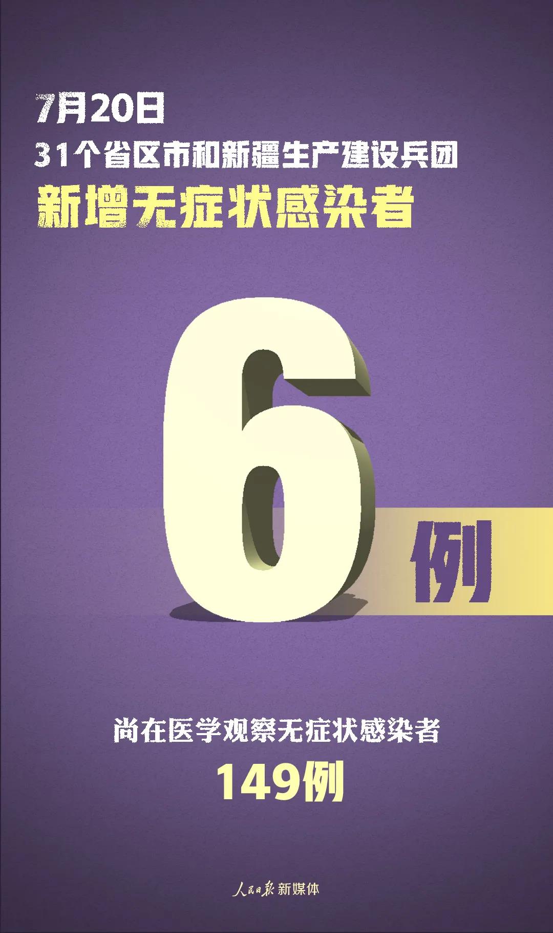 31個?。ㄗ灾螀^(qū)、直轄市)和新疆生產(chǎn)建設(shè)兵團(tuán)報(bào)告新增無癥狀感染者6例(境外輸入1例);當(dāng)日轉(zhuǎn)為確診病例1例(境外輸入1例);當(dāng)日解除醫(yī)學(xué)觀察10例(境外輸入7例);尚在醫(yī)學(xué)觀察無癥狀感染者149例(境外輸入80例)。