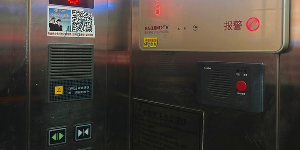第三個(gè)按鈕則位于電梯轎廂的廣告顯示屏上,看得出來這是新近安裝的。顯示屏的右下角有一個(gè)“報(bào)警”的電話按鈕,這個(gè)紅色按鈕始終保持著常亮的狀態(tài)。通過操作指南了解到,如果想要緊急呼叫,需要按下紅色按鈕,等待語音提示結(jié)束再長按按鈕,接通之后就可以直接通話求助了。記者通過測(cè)試發(fā)現(xiàn),這個(gè)按鈕可以正常撥通求助電話,并且在撥通之后,廣告顯示屏上的廣告會(huì)變成實(shí)時(shí)監(jiān)控畫面。