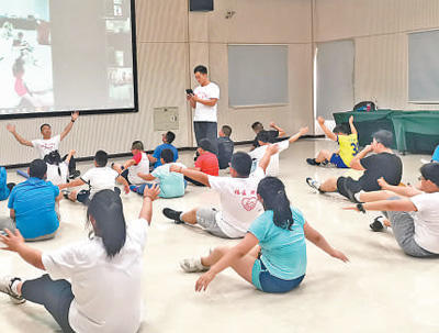 北京兒童醫(yī)院舉辦的減重夏令營(yíng),學(xué)員在指導(dǎo)老師的帶領(lǐng)下鍛煉。北京兒童醫(yī)院供圖