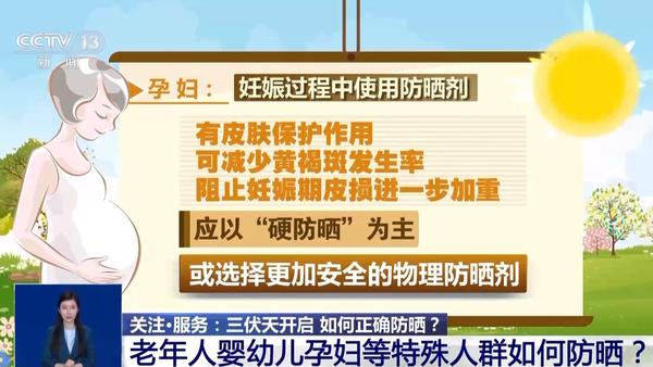 首都醫(yī)科大學(xué)宣武醫(yī)院皮膚性病科主任醫(yī)師 張海萍:首先要根據(jù)皮膚的表現(xiàn),如果只是有紅腫疼痛,可以用冷濕敷的方法,比如說在家里用一些冰牛奶或者說生理鹽水,倒在濕布上面,濕敷在皮膚表面,這樣反復(fù)幾次就有效緩解皮膚的紅腫反應(yīng)。如果曬傷比較厲害,出現(xiàn)了水皰甚至大皰的時候,就要及時到醫(yī)院請醫(yī)生幫您診治,以免感染。 老年人、嬰幼兒、孕婦等特殊人群如何防曬? 醫(yī)務(wù)人員還提示,夏季,嬰幼兒、老年人、孕婦等特殊人群更應(yīng)該注重合理防曬,促進身體健康。 老年人:作為骨質(zhì)疏松高發(fā)人群,老年人一定要接受適宜的陽光照射。采取合理的防曬措施可減緩皮膚衰老,預(yù)防日光性角化、基底細胞癌等皮膚腫瘤的發(fā)生。但要注意,長時間在陽光下活動,仍需采取一定的防曬措施。