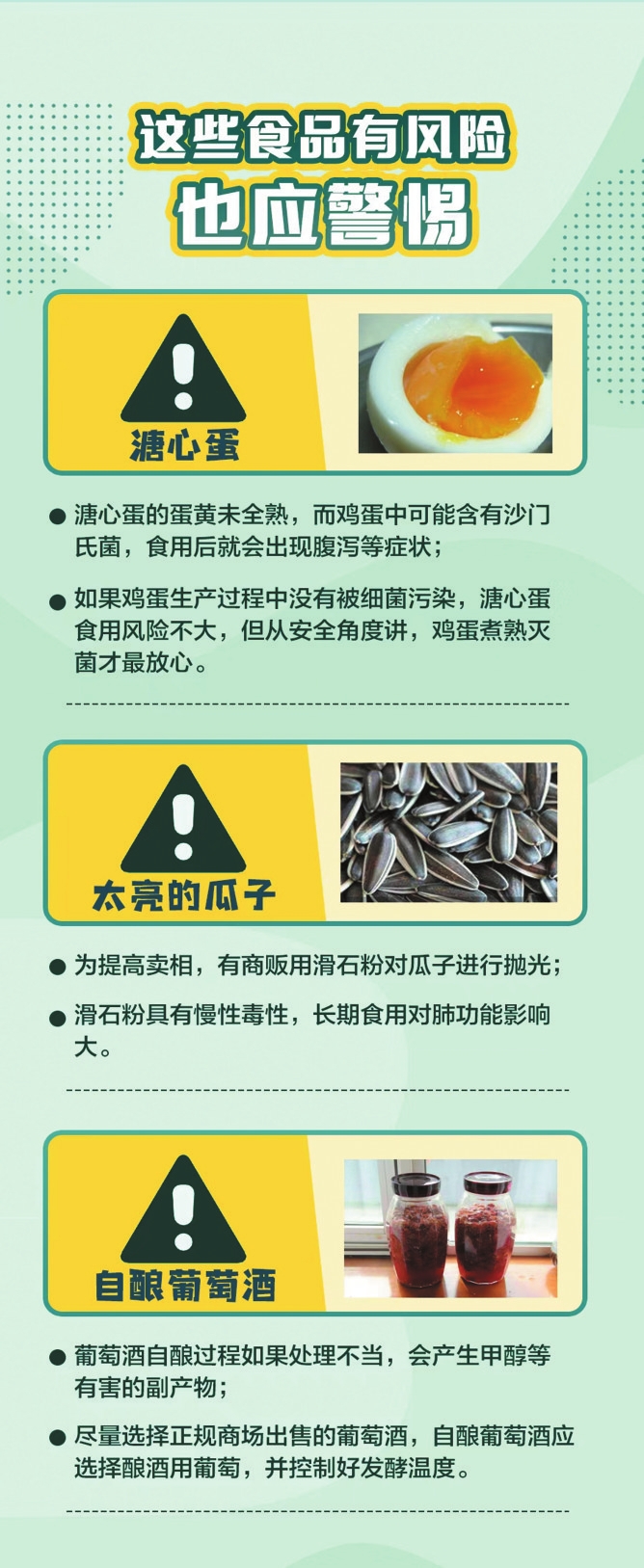 不買不新鮮的濕粉類食品,尤其是購買散裝銷售的濕粉類產(chǎn)品,要注意包裝上的生產(chǎn)日期、保質(zhì)期、儲存條件等信息,低溫儲存,并在當(dāng)天吃完。