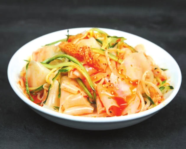 剛進(jìn)入伏天,氣溫飆升到近40℃。一天中午時分,大壯老爸從工地下班,帶回來一大張從街角買的涼皮,將涼皮切成手指粗細(xì),加入麻醬、香醋、辣椒油,就著大蒜,父子倆哐哐炫了好幾碗。