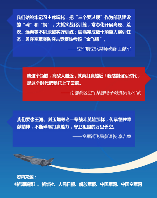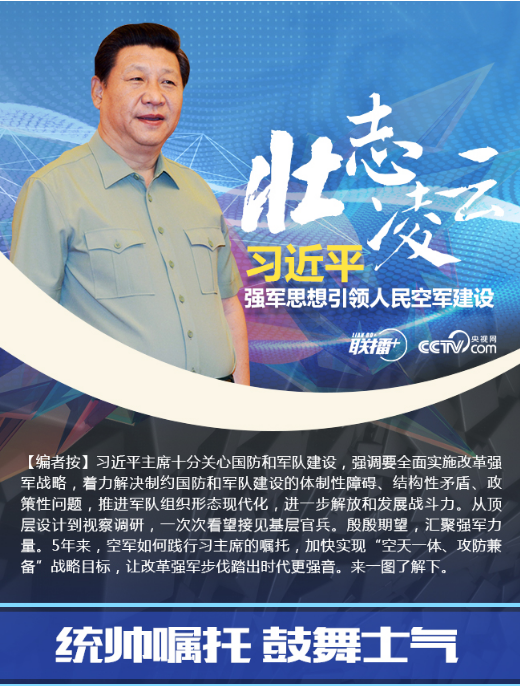【聯(lián)播+】5年前的4月14日,中共中央總書記、國(guó)家主席、中央軍委主席習(xí)近平專程到空軍機(jī)關(guān)調(diào)研空軍建設(shè)和軍事斗爭(zhēng)準(zhǔn)備,代表黨中央、中央軍委向空軍全體官兵致以誠(chéng)摯的問(wèn)候,強(qiáng)調(diào)要加快建設(shè)一支空天一體、攻防兼?zhèn)涞膹?qiáng)大人民空軍,為實(shí)現(xiàn)中國(guó)夢(mèng)、強(qiáng)軍夢(mèng)提供堅(jiān)強(qiáng)力量支撐。