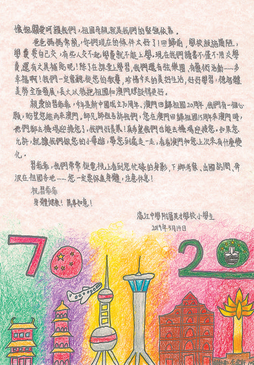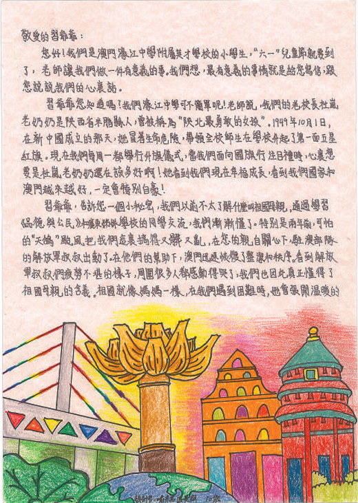 澳門濠江中學(xué)附屬英才學(xué)校小學(xué)生的來信