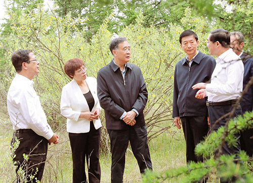 右玉縣位于毛烏素沙漠天然風口地帶,原本是風沙成患、山川貧瘠的“不毛之地”。新中國成立70年來,歷屆縣委堅持不懈帶領群眾防風固沙、植樹造林、改善生態(tài),創(chuàng)造了荒漠變綠洲的生態(tài)奇跡。2018年右玉縣成為山西省首批脫貧摘帽的國家級貧困縣之一,生態(tài)文明建設成為右玉打贏脫貧攻堅戰(zhàn)的關鍵舉措。4日至5日,汪洋先后來到右玉精神展覽館、南山森林公園豐碑、四五道嶺,考察植樹造林、水土保持、生態(tài)綜合治理情況。他還走進企業(yè)、學校和貧困戶,詳細了解產(chǎn)業(yè)扶貧、生態(tài)扶貧、教育扶貧等情況。