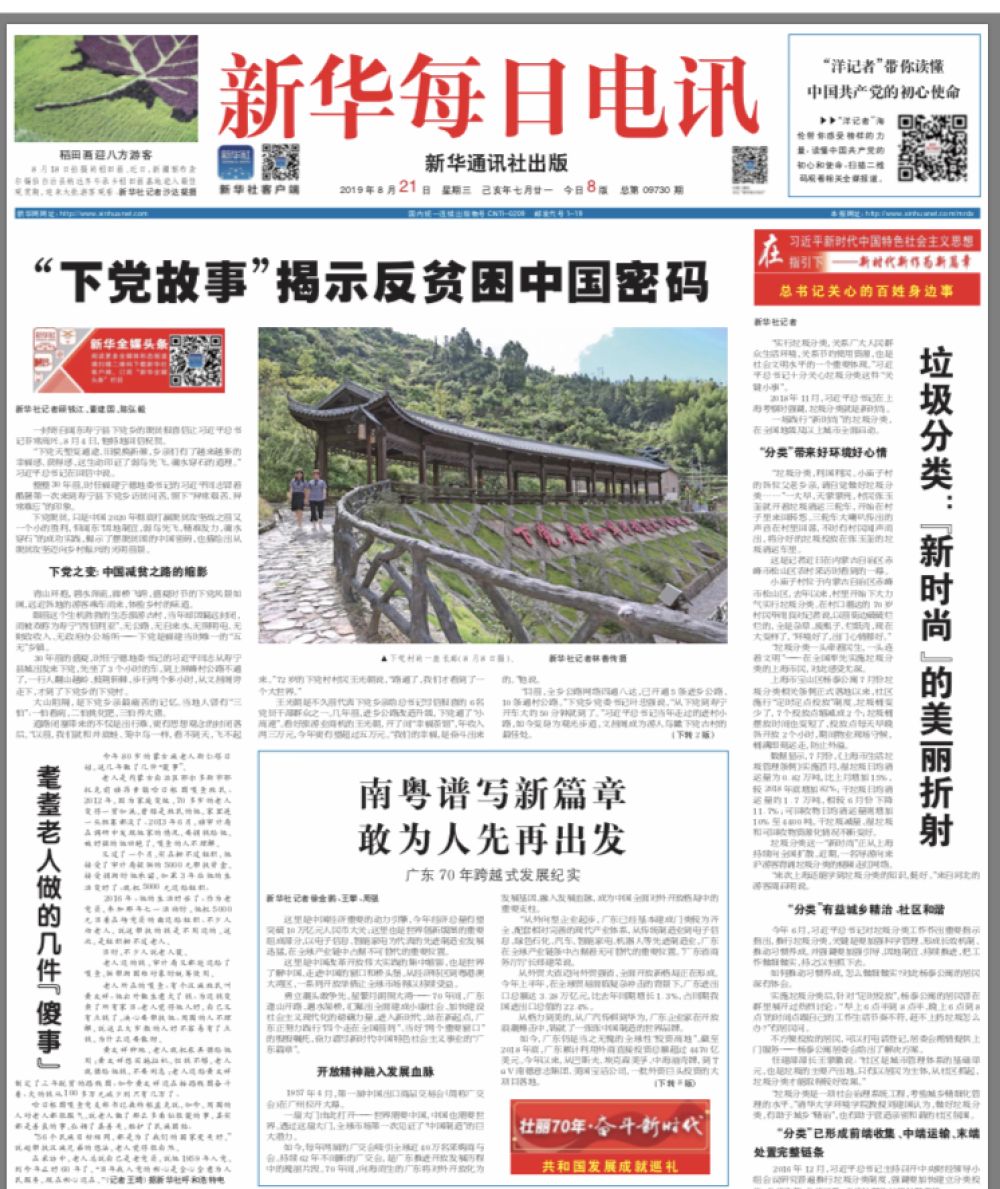 圖為2019年8月21日《新華每日電訊》頭版截圖。