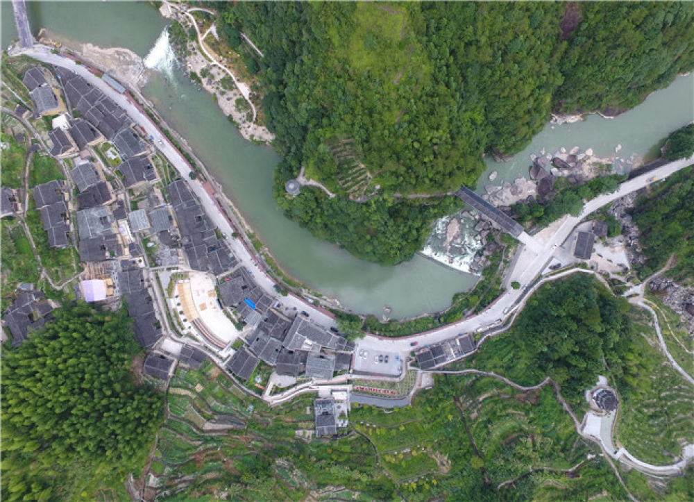 從空中俯瞰下黨村(8月8日無人機拍攝)。新華社記者 林善傳 攝