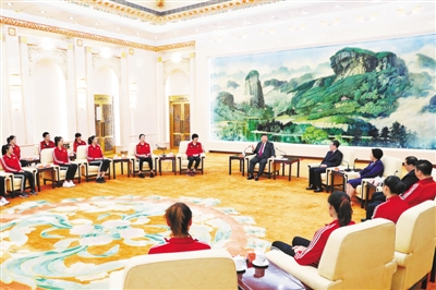 習(xí)近平強調(diào),在第十三屆女排世界杯比賽中,你們以十一連勝的驕人成績奪得了冠軍,成功衛(wèi)冕,為祖國和人民贏得了榮譽。你們不畏強手、敢打敢拼,打出了風(fēng)格、賽出了水平。在提前一輪鎖定冠軍的情況下,你們在最后一場比賽中沒有絲毫懈怠,尊重對手,尊重自己,堅持打好每一個球,很好詮釋了奧林匹克精神和中華體育精神。中國女排奪得了第五個女排世界杯冠軍,第十次榮膺世界排球“三大賽”冠軍,激發(fā)了全國人民的愛國熱情,增強了全國人民的民族自信心和自豪感。