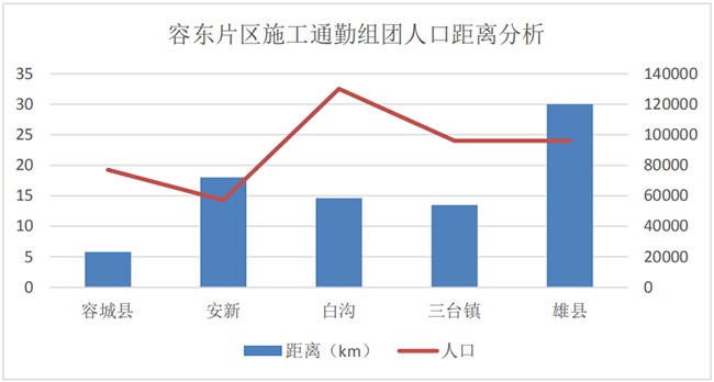 容東片區(qū)施工通勤組團(tuán)人口距離分析圖。